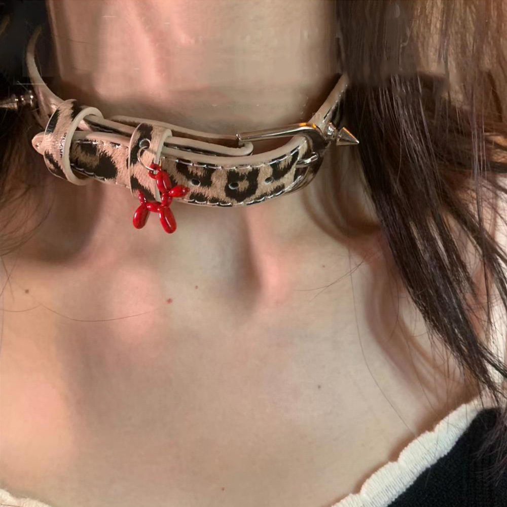 Leopard Choker Neck Chain Collar Women's Autumn and Winter High Sense Subculture Spice Girl Collarbone Chain y2k Sweet Cool Neck Chain