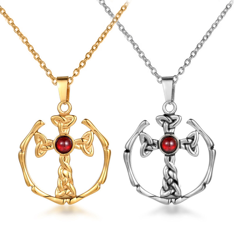 Cross Border Jewelry Wholesale Fashion Cross Pendant Necklace Male Religious Ruby Hip Hop Rock Jewelry
