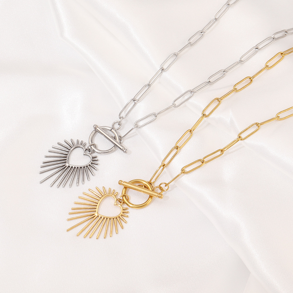 European and American Fashion Hollow Heart Pendant Necklace Ladies Personalized Stainless Steel Light Love Necklace Jewelry Wholesale