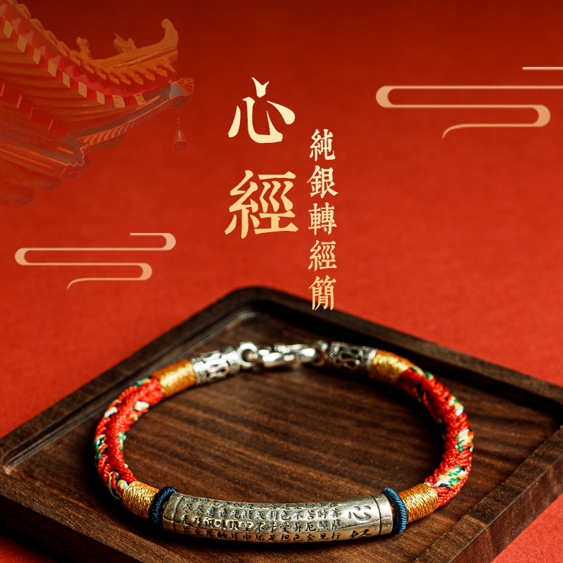 S925 silver bracelet, six-word proverb, adjustable birth year safety red rope, male bracelet, female jewelry