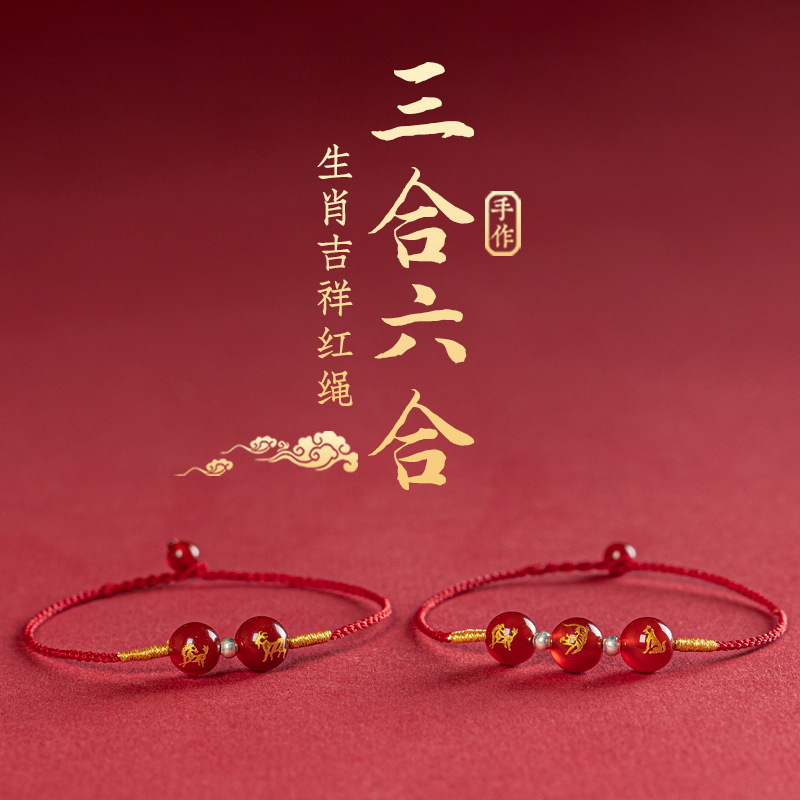 Braided rope twelve Zodiac three-in-six-in-one bracelet female birth year red bracelet thin anklet auspicious jewelry