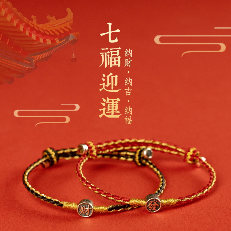 Hand rope woven birth year red rope Qifu 925 silver Children Baby anklet bracelet men and women jewelry