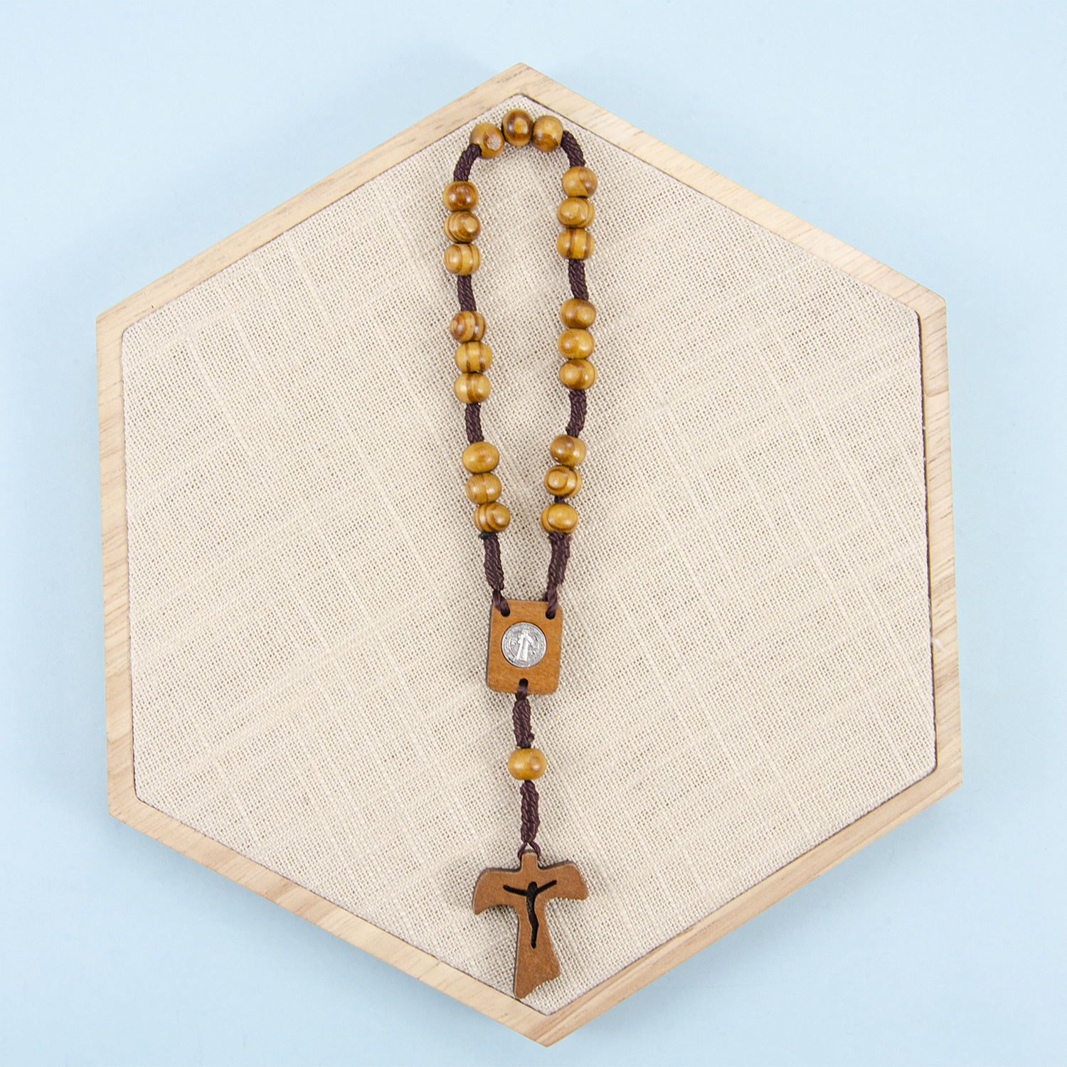 Natural Wooden Retro Cross Rosary Bracelet Pine Bead Rope Easter Cross-Border Jewelry Necklace Wholesale