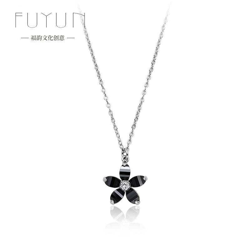 Necklace Creative Black Glaze Flower Necklace High Sense Shiny Glaze Petals Zircon Inlaid Commuter Simple Necklace