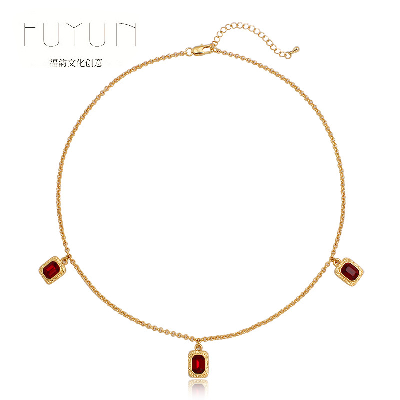Necklace French retro style ruby inlaid necklace niche designer style clavicle chain stackable necklace wholesale