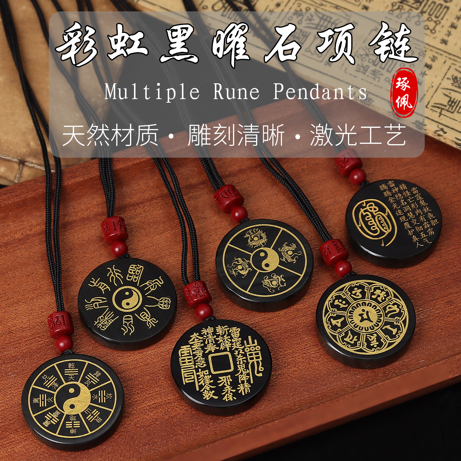 Natural Rainbow Obsidian Buddhist Culture Pendant Retro Ethnic Style DIY Versatile Round Pendant Jewelry Necklace
