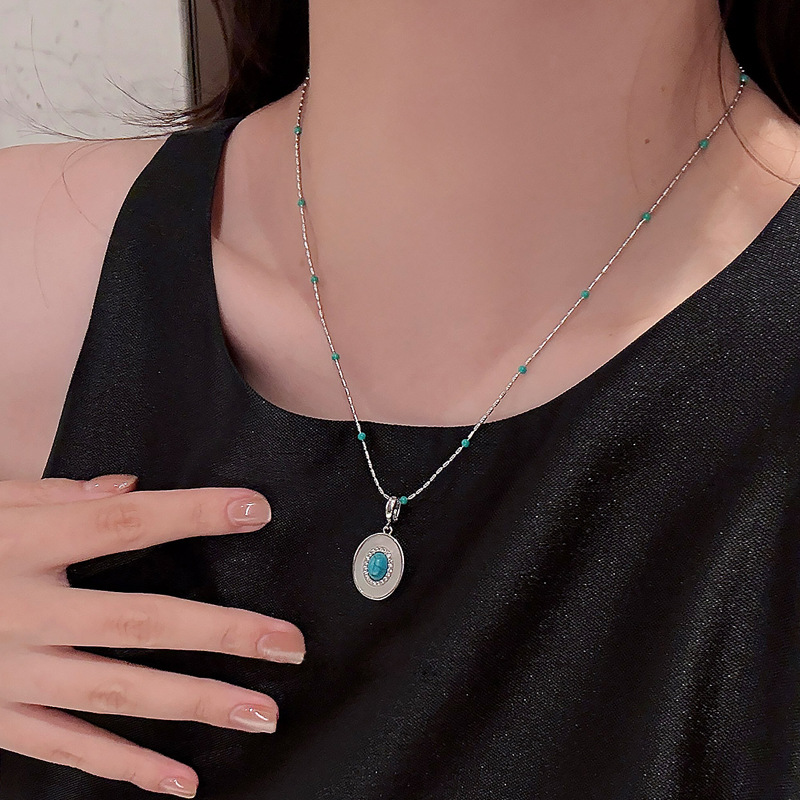 White Tea Stacked Turquoise Necklace Accessories Women's High-End Clavicle Chain Accessible Luxury Niche Design Pendant Necklace Jewelry