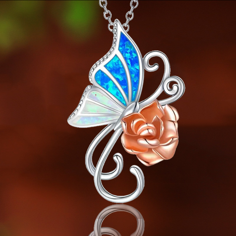 Cross-border popular jewelry fashion butterfly pendant rose necklace female niche design sense European and American style jewelry wholesale