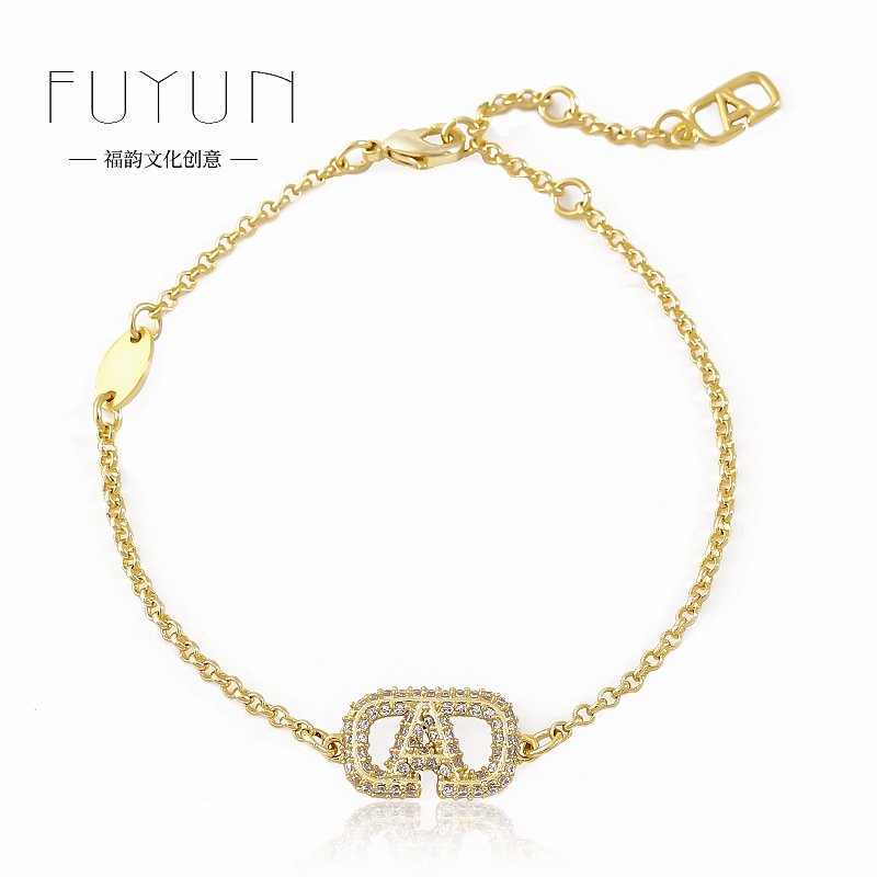 Letter Bracelet Girl's Niche Korean Light Luxury High-end Elegant All-match Brass Plated Gold Inlay Zircon Bracelet