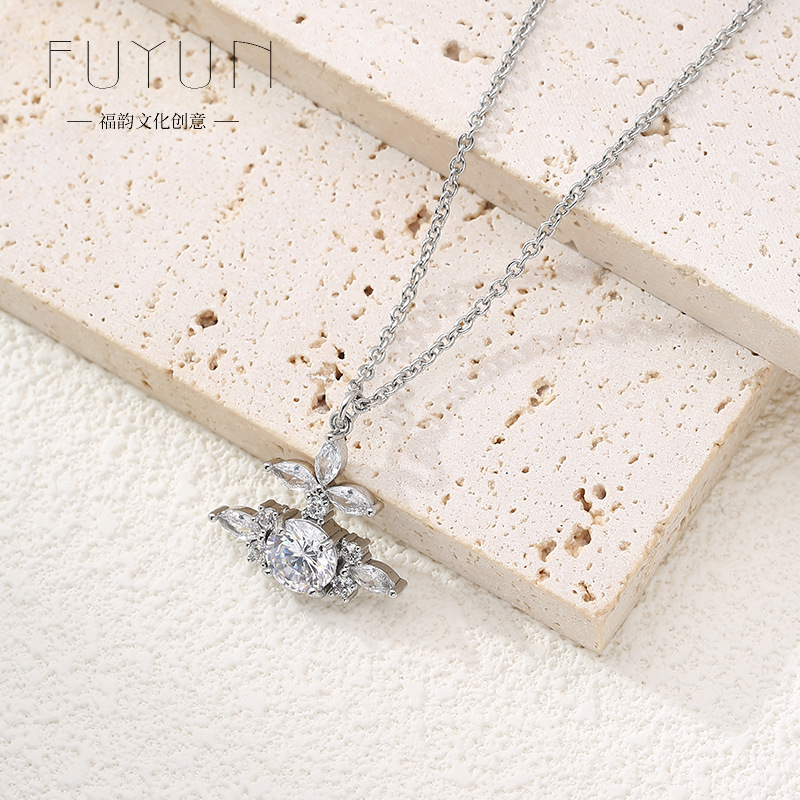 Trendy Necklace Saturn Titan Planet Zircon Inlaid Necklace Simple Petal Planet Necklace High-End Accessory