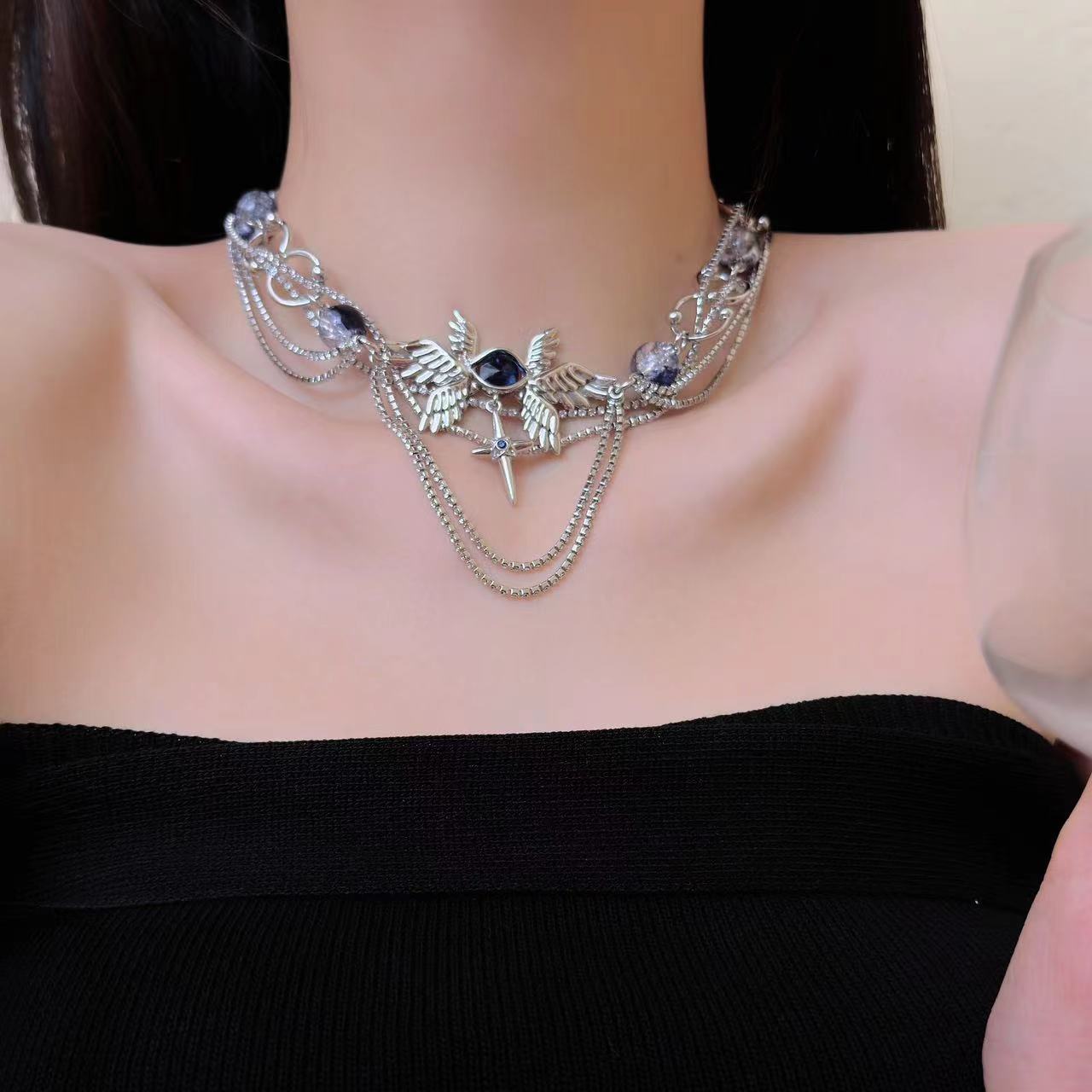 Y2K Spice Wings Necklace Punk Style Subculture Sweet Cool Spice Neck Chain Gothic Niche Diamond Collarbone Chain Tide