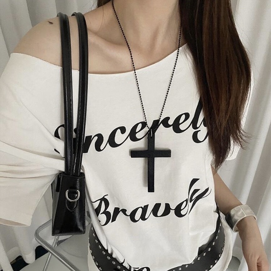Y2K Subculture Dark Retro Punk Halloween Cross Necklace Sweater Clavicle Pendant Unisex