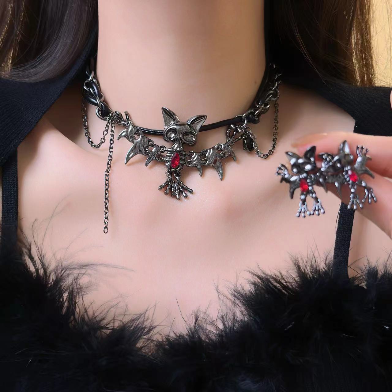 Y2K Heavy Industry Diablo Devil Bat Necklace chocker Spice Girl Subculture Sweet Cool Punk Gothic European and American Niche