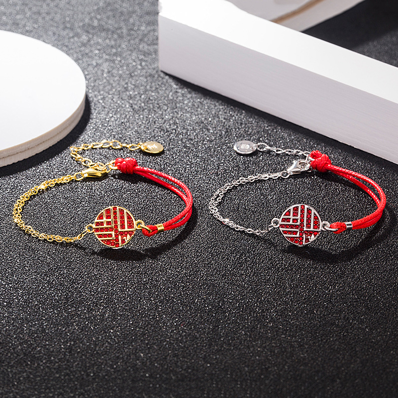 Shi Jia s925 Sterling Silver Fu Character Old Palace Palace Culture Year of the Rat Bracelet Female Diamond Birth Year Red Rope Bracelet