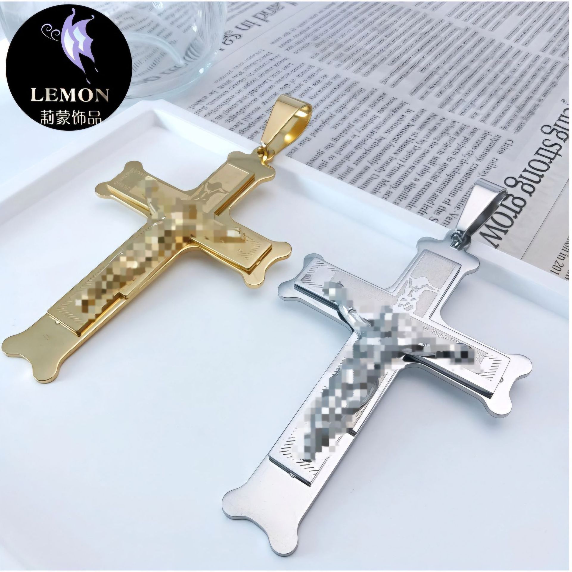 Factory Ready Stock Amazon Aliexpress Labeling and Delivery Titanium Steel Stainless Steel Cross Pendant Necklace Jewelry Jewelry