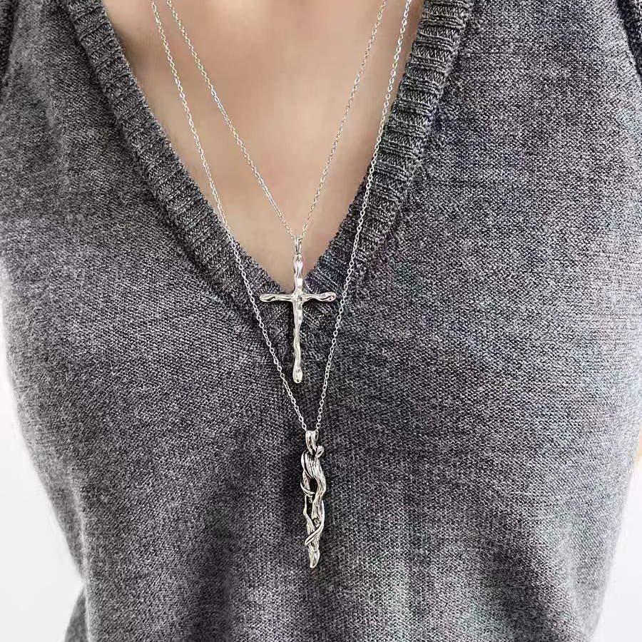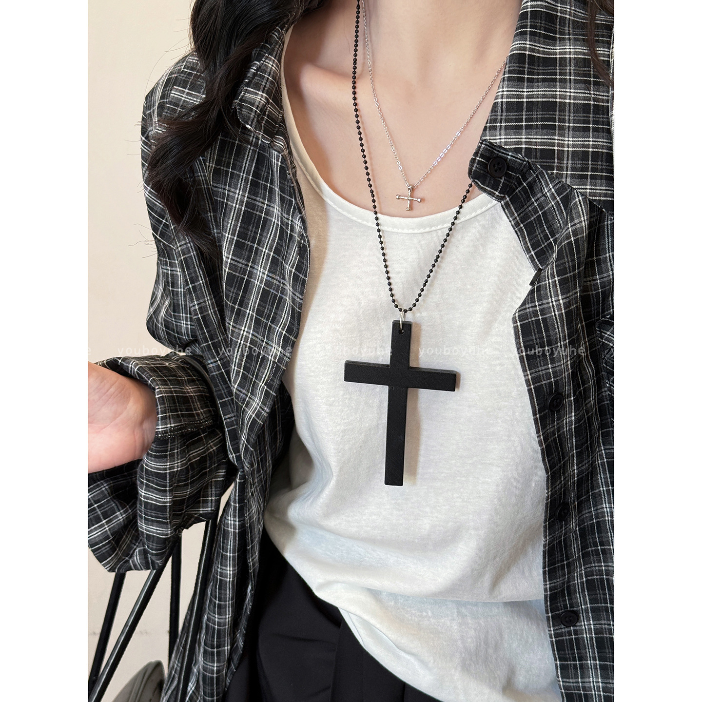 Y2K Subculture Cross Pendant Necklace Women's High-End Long Stacked Sweater Chain Sweet Cool Sexy Style Accessories
