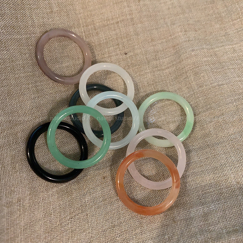 New Chinese Style Imitation Jade Ring ~ Glass Antique Zen White Tea Qinghuan Fine Green Ring Finger Ring Cold Wind Food Finger Ring for Women