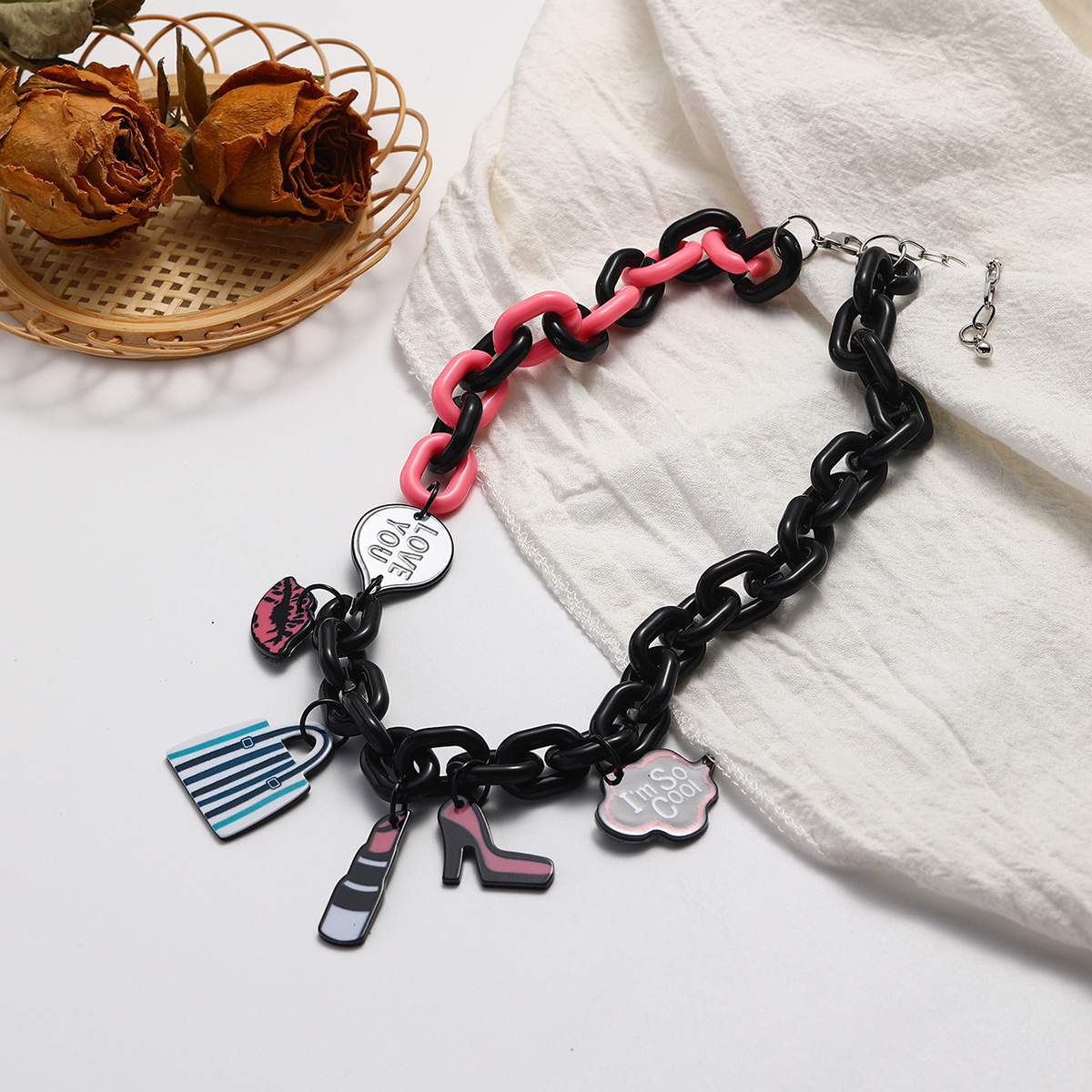Cross-border hot-selling European and American fashion new hip-hop LOGO culture black powder with personality fashion all-match ladies necklace