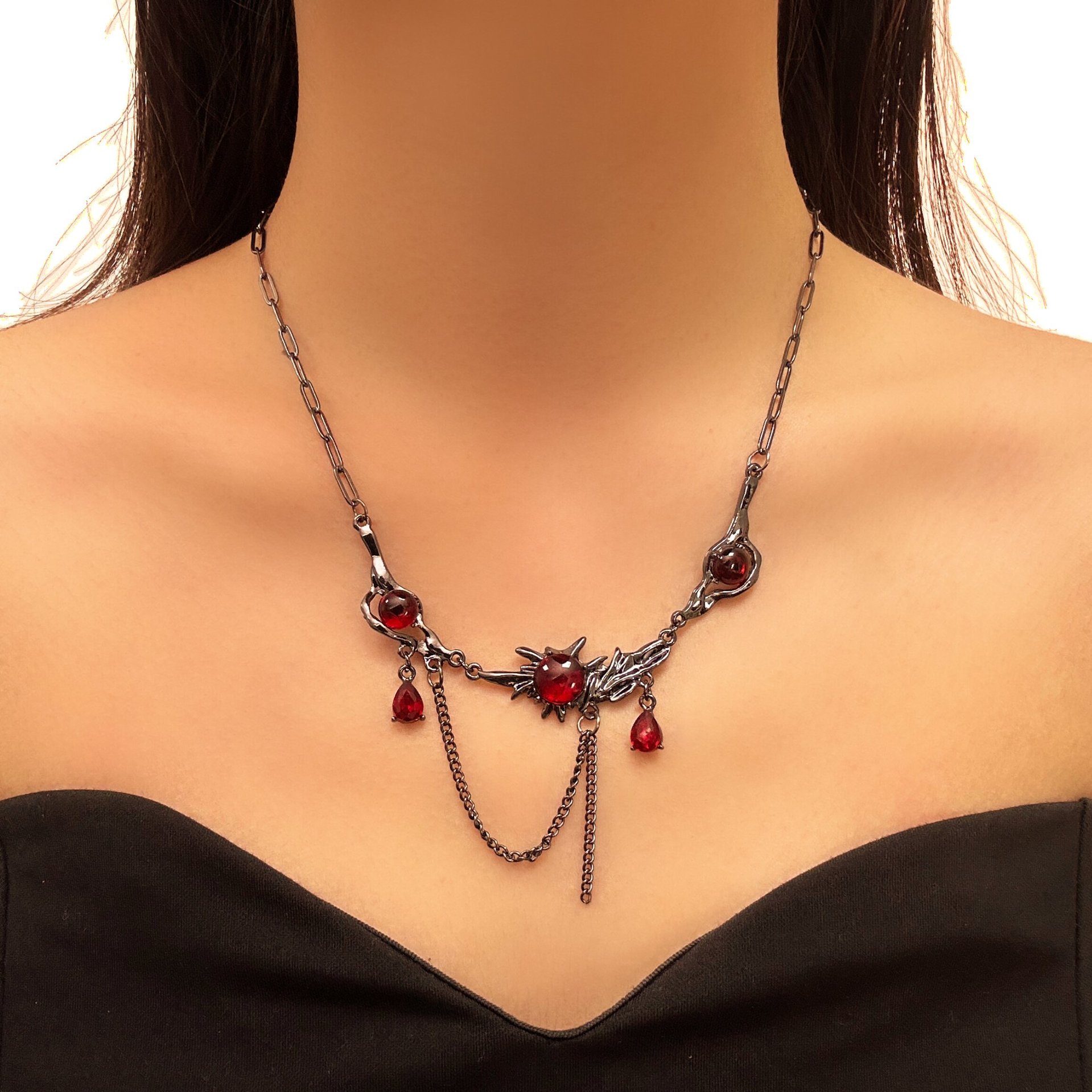 Y2K Subculture Deadwood Pendant Necklace Women's Niche Design Gothic Sweater Chain Sweet Cool Sexy Clavicle Chain Accessories