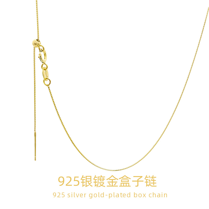 Silver Jewelry S925 Sterling Silver Box Chain Necklace Pin-Type Universal Adjustable Women's Clavicle Chain DIY Bead Threading Accessories Versatile