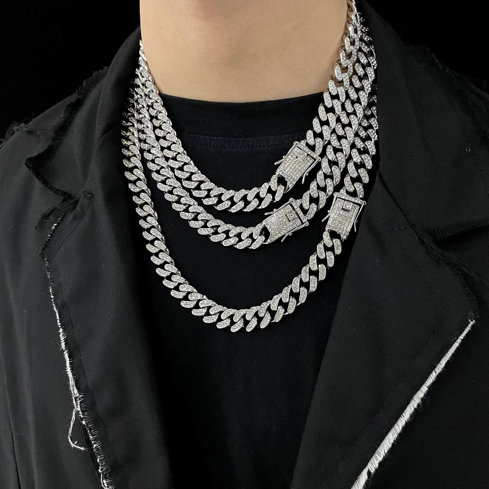 12mm wide single row of diamond Cuban chain with diamond alloy thick chain diy hand necklace European and American New Hip Hop Cuban necklace
