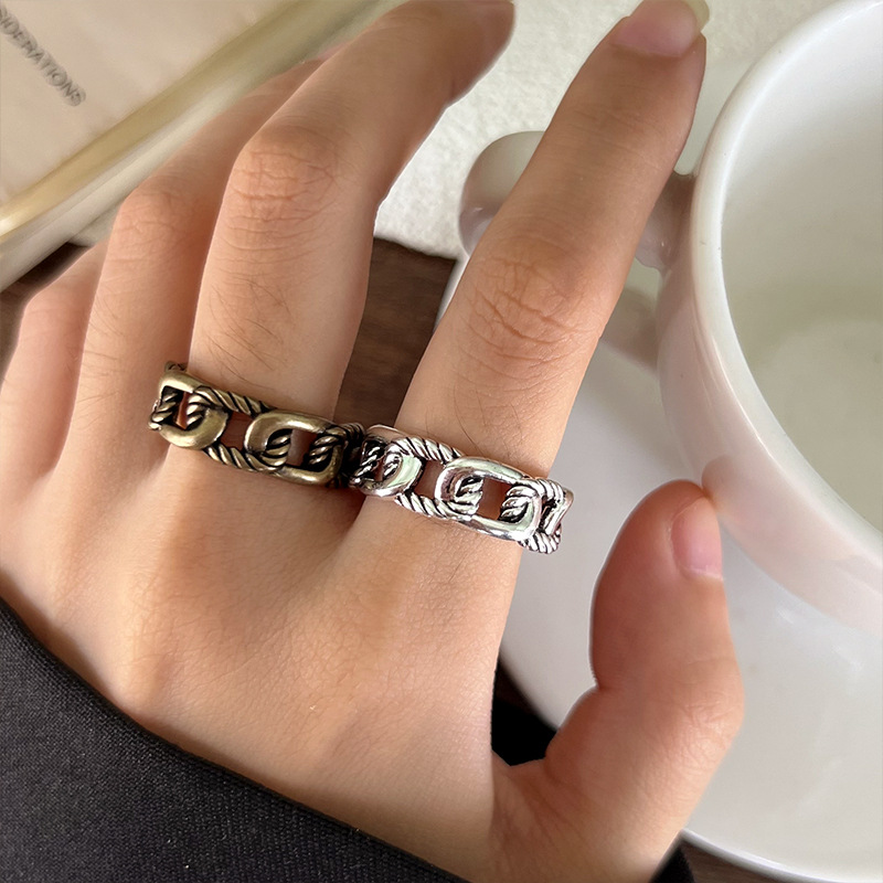 Retro Thai Silver Jewelry for Men and Women, Unique Chain Cross-Border Unisex Open Ring, Niche 925 Silver Ring for Women
