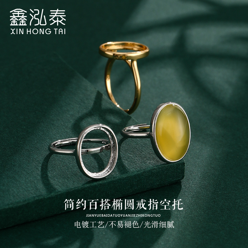 Simple smooth oval diy ring empty Holder Men's inlaid beeswax southern red jade ring holder handmade accessories empty holder