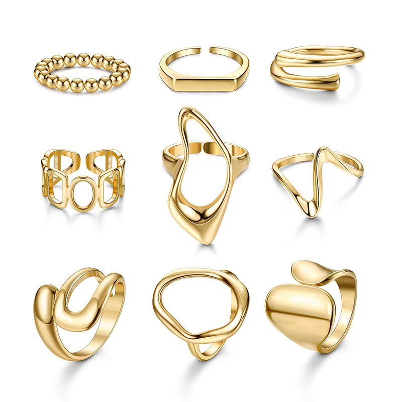 European and American Cross-Border 9 Simple Open Rings for Women Niche Design Adjustable Ring Geometric Asymmetrical Ring