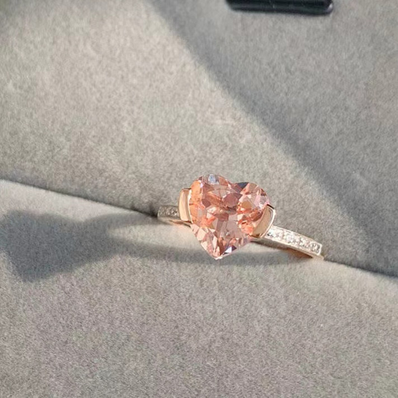 New imitation morganite heart-shaped gemstone open ring Women's champagne color love adjustable ring fashion temperament