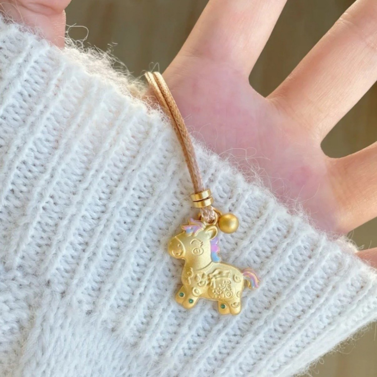Cute Gold-Plated Pony Enamel "Get Rich" DIY Pendant Long Necklace for Women Sweater Chain Style