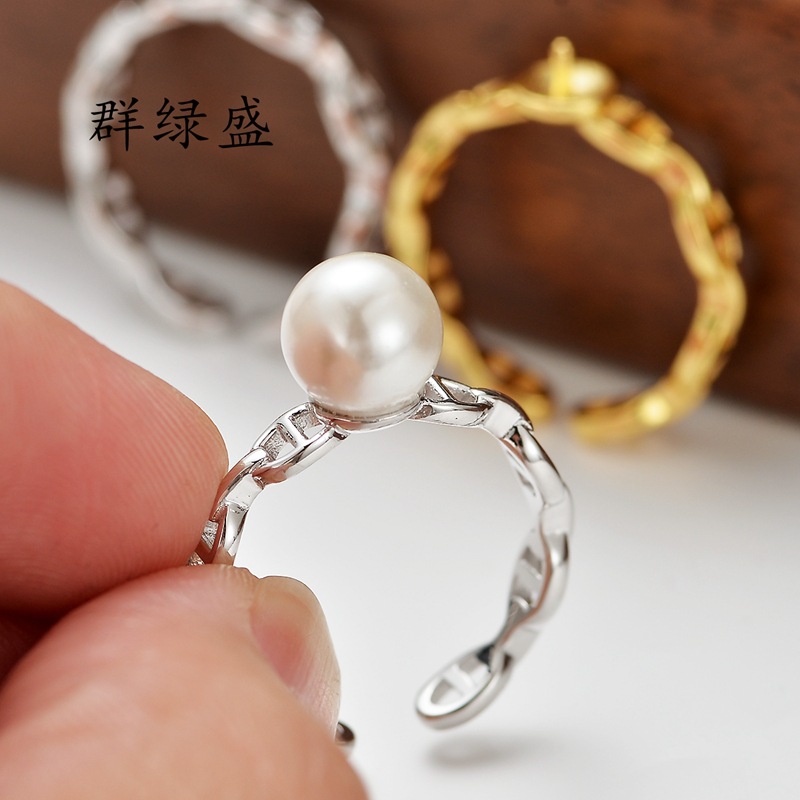 Group Lvsheng S925 Sterling Silver Pig Nose Ring Empty-holder Opening Adjustable Fashionable All-match diy Semi-finished Ring-holder