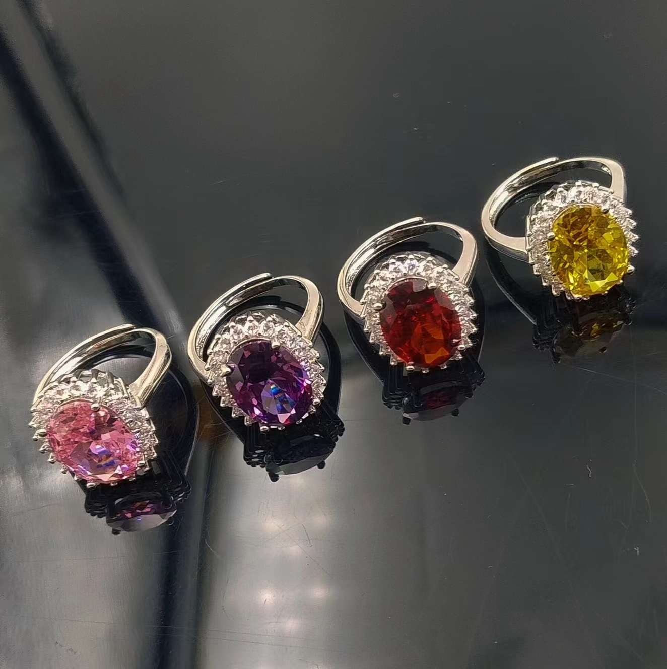 Fashionable Pigeon Egg Princess Diana Style Ring, Feminine Micro-Encrusted Colored Zircon Luxury Full Diamond High-Quality Index Finger Ring for Girls