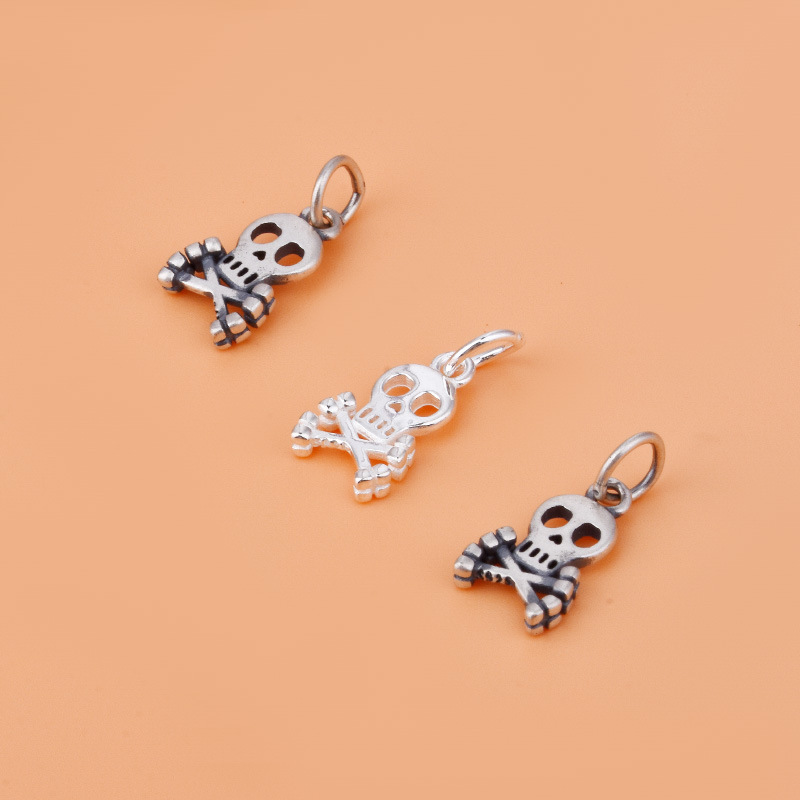 S925 sterling silver skull skull pendant retro pendant diy beaded material bracelet necklace accessories jewelry