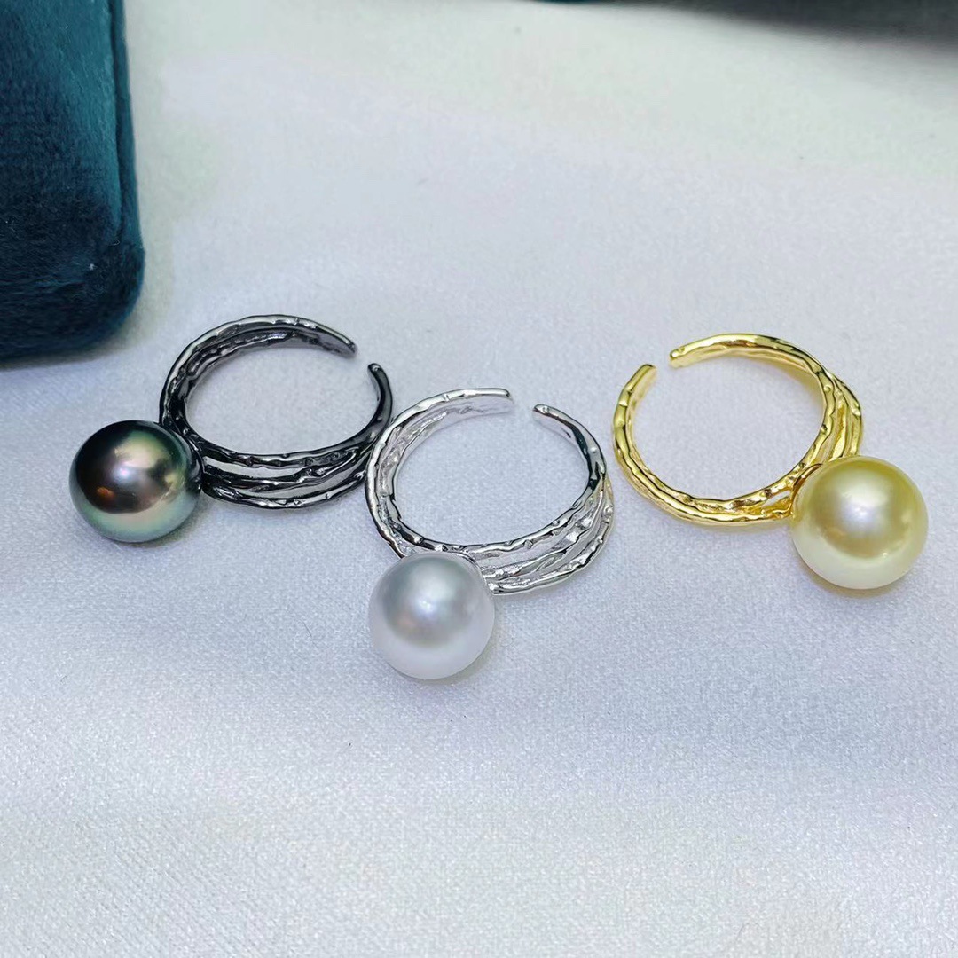 DIY pearl accessories S925 sterling silver ring empty support fashion ring Silver support female with 10-12mm round beads