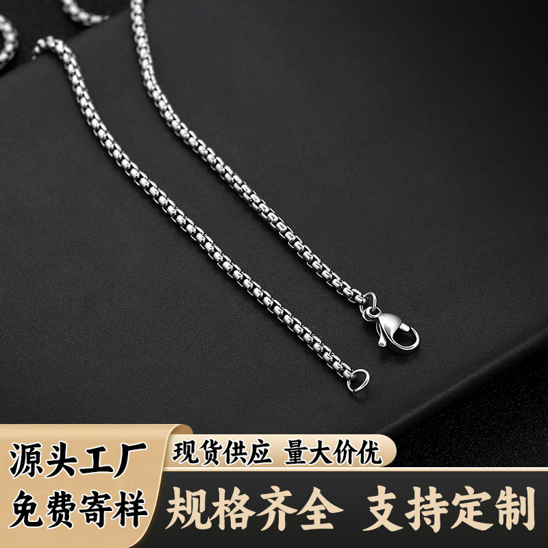 Spot Wholesale Stainless Steel Square Pearl Necklace Non-Fading Titanium Steel Jewelry Accessories Men and Women Personalized DIY Chain