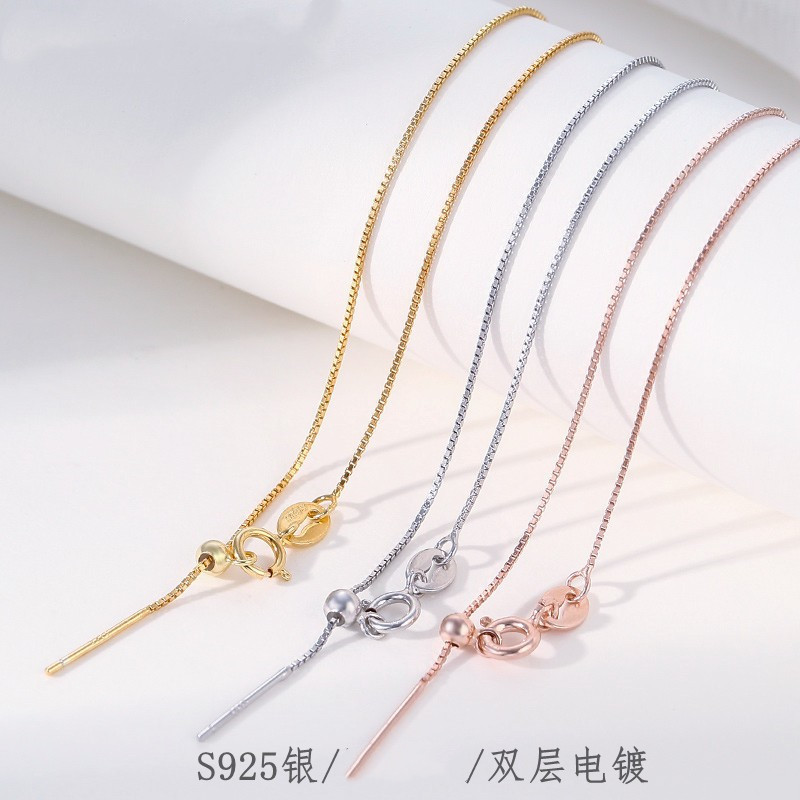 S925 Silver Box Chain Clavicle Necklace with Needle Pearl Crystal Accessories DIY with Silicone Adjustable
