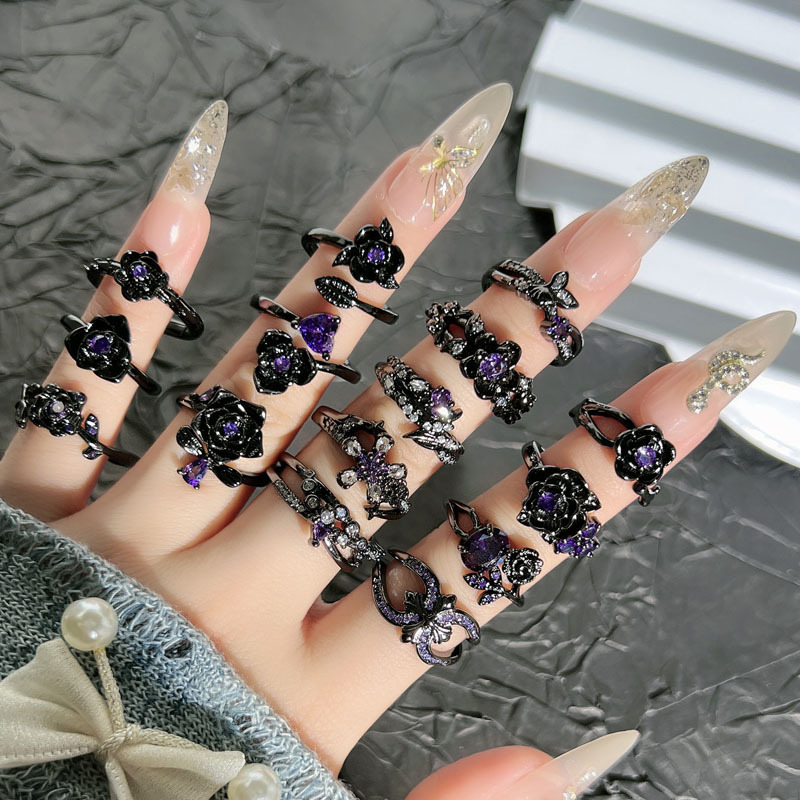 Trendy Dark Style Purple Diamond Cool Flower Thorn Purple Night Floral Fashion Ring Unisex Street Punk Ring