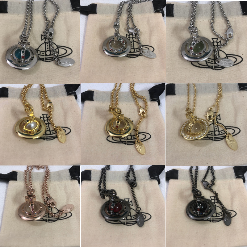 Queen Mother of the West medium UFO orb three-dimensional Saturn necklace replica mint green glacier blue glass beads sweater chain