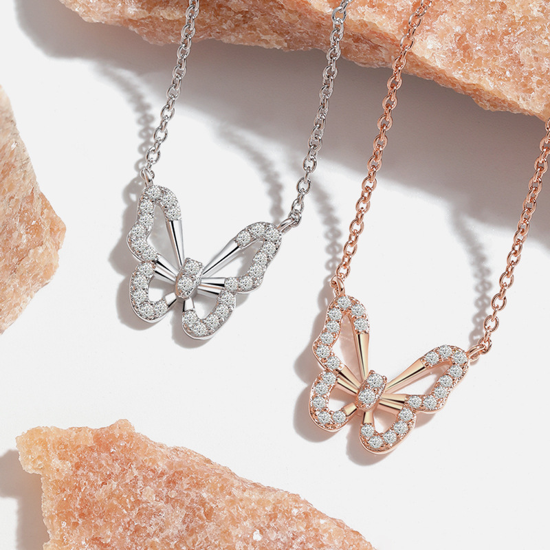 18K Rose Gold Bow Pendant Collarbone Chain Korean Style Personalized Design High-grade Sense Full Diamond Hollow Butterfly Necklace