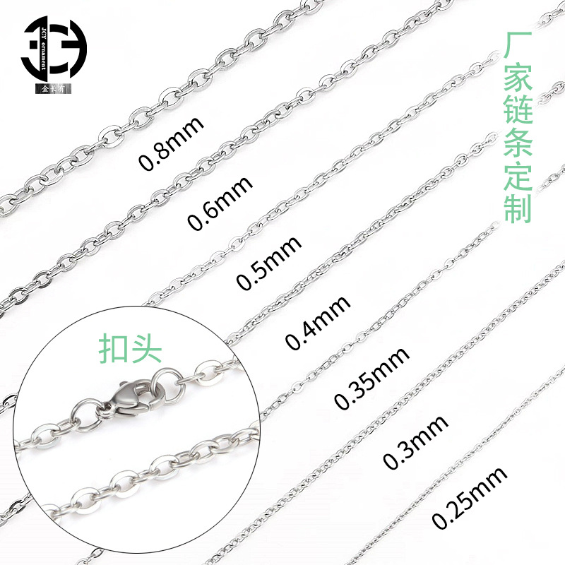 Factory Supply Stainless Steel Bare Chain o Chain 304 Stainless Steel Hammer Cross Chain DIY Jewelry Fashion Ladies Necklace