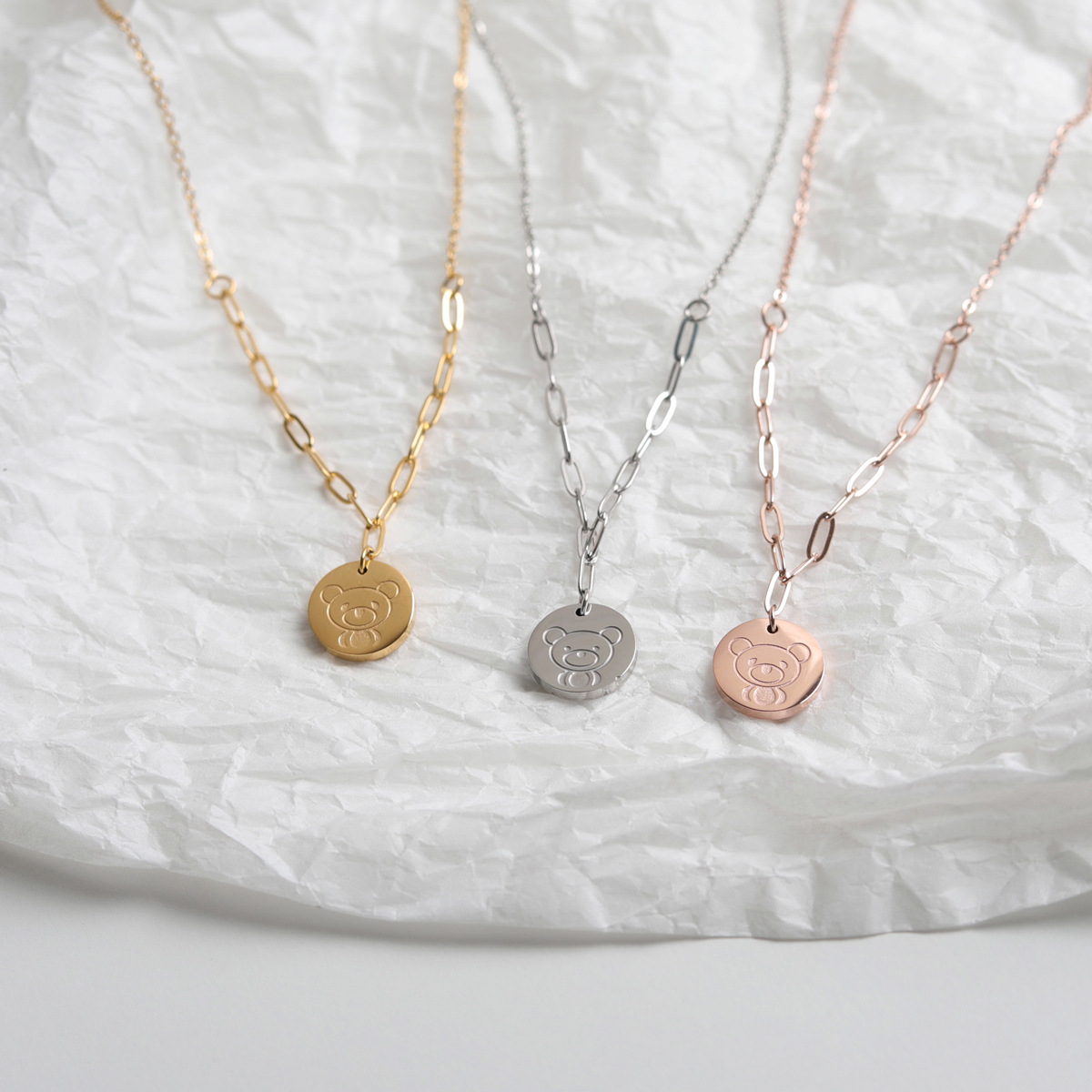 Japanese and Korean niche unique high-grade sweet cool clavicle chain cute bear round brand titanium steel necklace light luxury niche jewelry