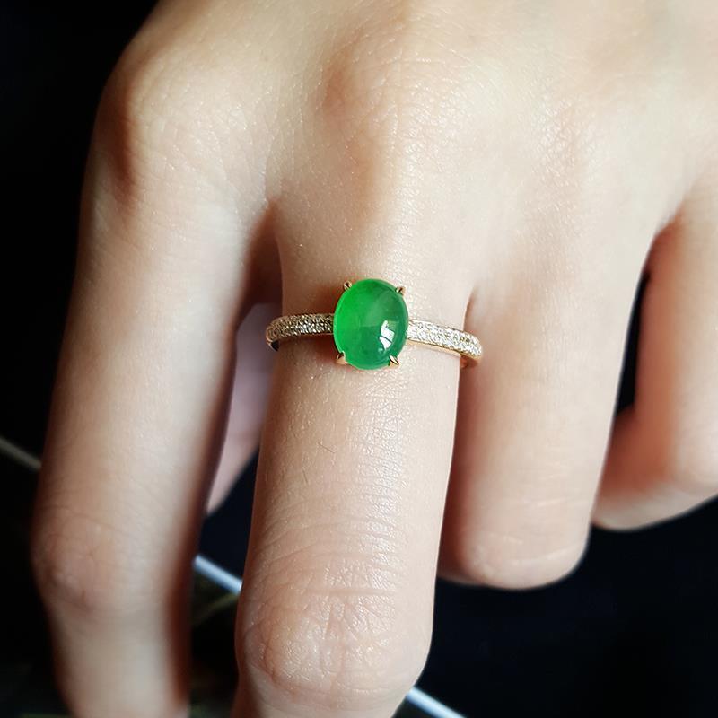 New S925 Silver Plating Ring Women's Inlaid Yang Green Fluorescent Imitation Jade Ring Jade Opening Ring Women's Elegant Fashion Style