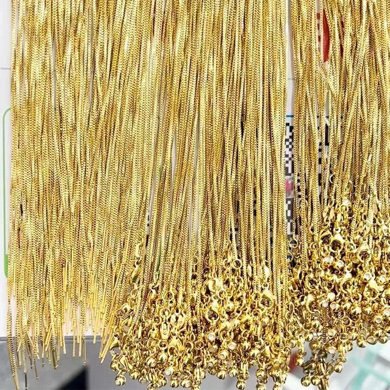 18K gold-plated pin pendant necklace 46cm box chain 0.8 thin chain telescopic adjustable handmade diy chain