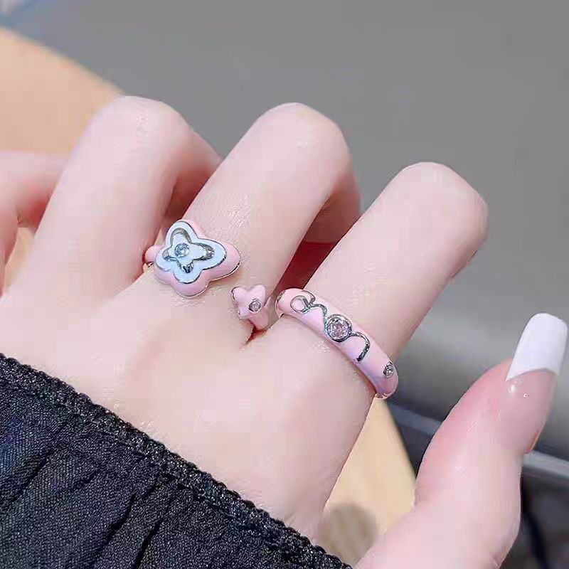 Oil Dripping Barbie Pink Butterfly Open Ring, Feminine, Fashionable and Sweet, Numerous Pamine Niche Index Finger Rings