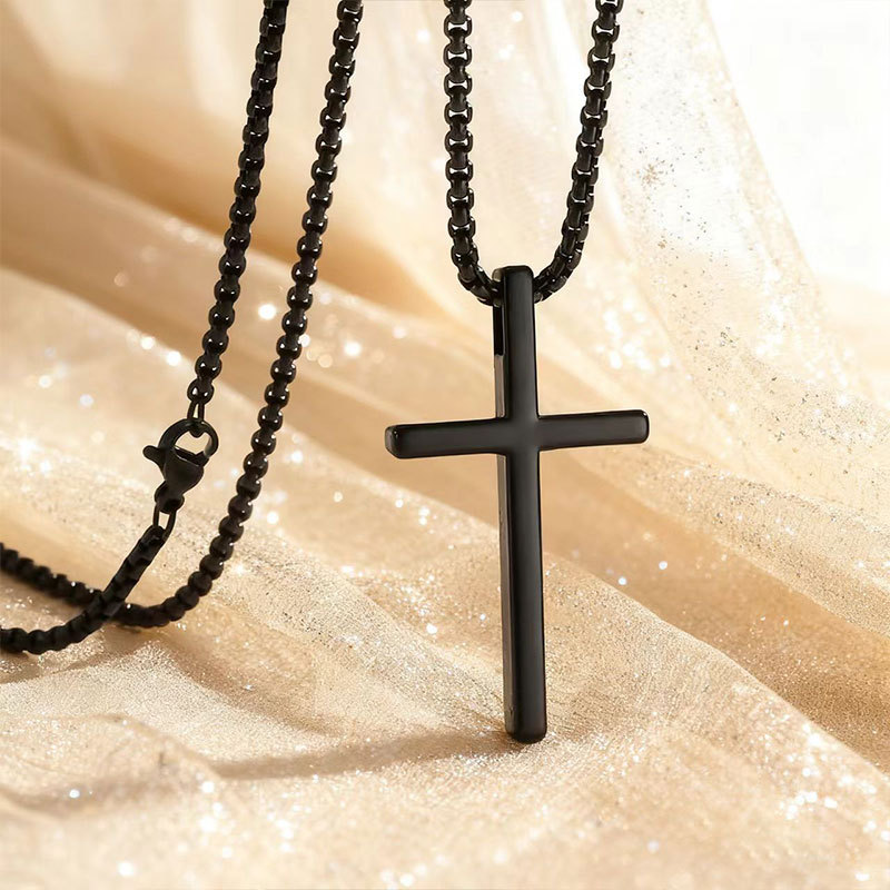 Cross-Border Hot-Selling Stainless Steel Cross Necklace Simple Pendant Sweater Chain Stainless Steel Unisex Style Neck Chain