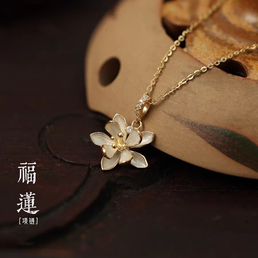 2023 New Lotus Necklace Female Temperament All-match National Fashion Style Clavicle Chain Fashion Luxury diy Pendant Jewelry