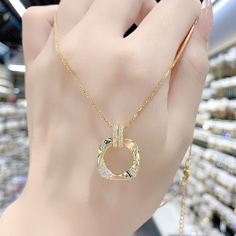 Light Luxury Geometric Square Necklace, High-End New Niche Design, Short Clavicle Chain, High-End Atmospheric Popular Necklace