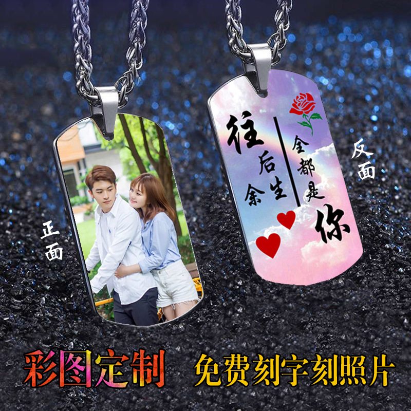 Titanium Steel Necklace Double-Sided Colorful Photo Engraving Military Tag Valentine's Day Gift DIY Small Pendant Franchise Delivery