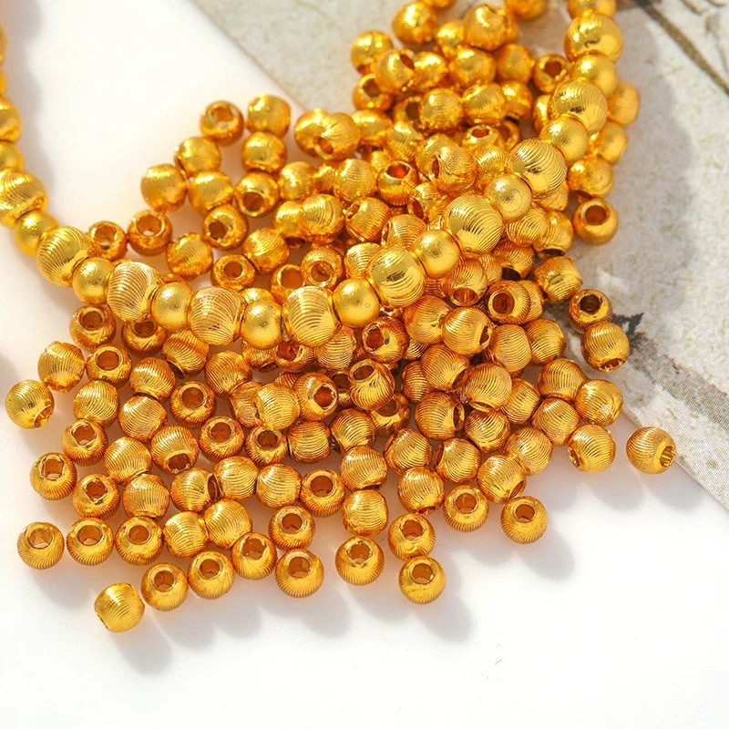 Real Gold-Plated Strong Color Retention Ancient Sand Gold Cat's Eye Bead Bracelet Necklace Spacer Beads DIY Accessories Decorative Small Gold Beads