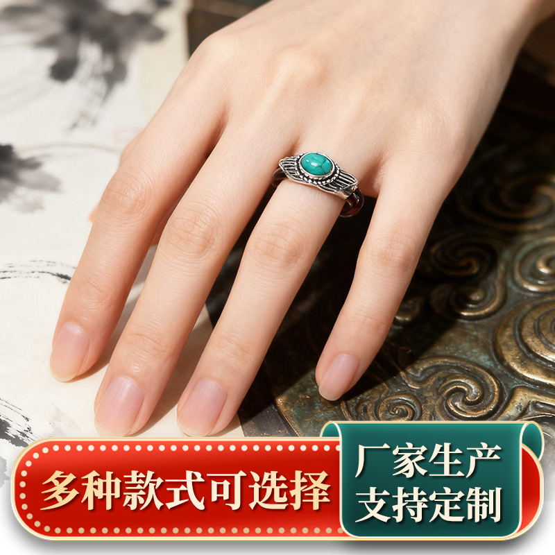 Chicken Blood Vine Ring, Xizang Silver Inlaid Gemstone Ring, Ethnic Style Bestie Small Objects, Finger Wooden Jewelry